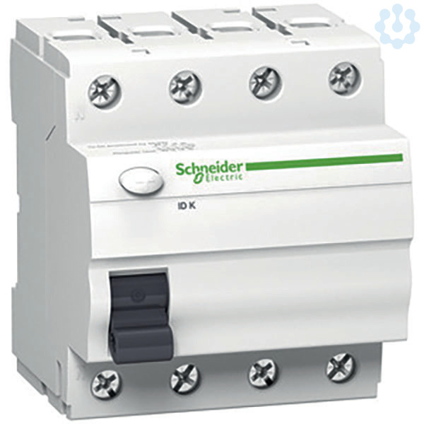 Fehlerstromschutzschalter Acti 9 ID K. 4-polig, Nennstrom 63A, Erdschlussempfindlichkeit 30mA, Erdschluss-Schutzklasse Typ A, Betriebsspannung (Ue) 400V AC, Isolationsspannung (Ui) 440V AC, Ein- und Ausschaltvermögen (Im/Idm) 500A. Gewährleistet den Zusatzschutz bei direktem Berühren (? 30mA), bei indirektem Berühren (z.B. bei Isolationsfehlern, 300mA). Schalten und Trennen von Stromkreisen. Sprungschaltung für verschleißarmes Schalten der Kontakte. Prüftaste für die regelmäßige Prüfung der Funktion. Große Fläche zur Stromkreisbezeichnung. Anschluss in nachgeschalteter Richtung durch Biconnect-Kammschiene. Anschluss in vorgeschalteter/nachgeschalteter Richtung durch Tunnelklemmen. Technologie der Auslöseeinheit- thermomagnetisch. Kombinierbar mit der Multi 9 Baureihe. Die Montage von elektrischen Zusatzeinrichtungen ist nicht möglich. Farbton RAL 9003. Der Fehlerstromschutzschalter ID K erfüllt folgende Normen- IEC/EN 61008-1 und VDE 0664. Des Weiteren ist diese Baureihe VDE zertifiziert!.
