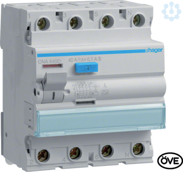 Fehlerstromschutzschalter 4 polig 6kA 40A 100mA Typ S selektiv. Fehlerstrom-Schutzschalter (FI) nach EN 61008-1, EN 61008-2-1; VDE 0664 Teil 10 + 11, Berührungsschutz IP2x nach DIN VDE 0106 Teil 100. Selektiv zu nachgeschalteten Geräten mit einem kleineren Bemessungsfehlerstrom. Geeignet zum nachträglichen Anbau von Zusatzeinrichtungen (Montage ohne Werkzeug). Anschlussklemmen mit Draht-Einschiebe-Schutz, Bi-Connect-Klemmen unten, externe blaue Test-Taste zur halbjährlichen Betätigung und Fehlerstromanzeuge. Einfache Entnahme aus dem Phasenschienenverbund. Alle Produkte mit ÖVE und VDE Zeichen. Beschriftungsmöglichkeit direkt am Gerät. Vorsicherung: 40A entsprechend OVE E 8101: 2019 bzw. Begrenzung des Betriebsstroms durch nachgelagerte Sicherungen.