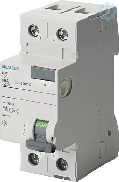 FI-Schutzschalter, 2-polig, Typ AC, In: 40 A, 300 mA, Un AC: 230 V Der FI-Schalter ist die Fehlerstrom-Schutzeinrichtung für Berührungsschutz Die patentierten Fehlerstrom-Schutzeinrichtungen von Siemens sind ein wichtiger Bestandteil der SENTRON Schutzkomponenten für die Elektroinstallation, denn sie verhindern lebensbedrohliche Stromunfälle durch sicheres Abschalten gefährlicher Fehlerströme gegen Erde. Elektrisch gezündete Brände können bereits im Entstehen verhindert werden. Ob durch direktes Berühren betriebsmäßig unter Spannung stehender Teile oder durch indirektes Berühren von Betriebsmitteln - der Schutz wird vor allem durch schnelles Abschalten erreicht. Die Siemens FI-Schutzschalter 5SV zeichnen sich vor allem aus durch: 1. Umfassenden Schutz für Personen und Sachwerte vor elektrischem Schlag. 2. Ob sinusförmige Wechselfehlerströme oder glatte Gleichfehlerströme - Siemens bietet für alle Anforderungen den passenden Typ sowie spezielle Ausführungen. 3. Zuverlässige Sicherheit bei der Installation dank standardmäßig enthaltenen Umgreif- und Berührungsschutz. 4. Werkzeugloses Lösen von der Hutschiene bzw. aus dem Sammelschienenverbund durch komfortable Schieber-Hand-Betätigung. 5. Datamatrix-Code vorne am Gerät bietet schnell und einfach alle Infos rund um den FI-Schutzschalter. 6. Seien Sie normgerecht geschützt: Die Fehlerstrom-Schutzschalter entsprechen den Bestimmungen der DIN VDE. 7. Optimale Technik für Ihre Sicherheit - nur von Siemens. www.siemens.de/fehlerstromschutz. Siemens bietet für die sichere, effiziente elektrische Infrastruktur in Gebäuden und Industrie ein durchgängiges Portfolio an Schutz-, Schalt-, Mess- und Überwachungsgeräten, Verteilersysteme sowie Schaltern und Steckdosen.