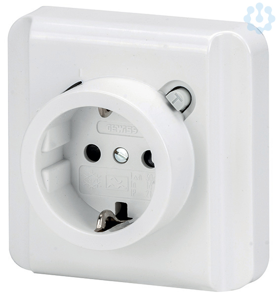 Sicherheitssteckdose mit integrietem Fehlerstrom-Schutzschalter zur Unterputz-Installation in eine Geraetedose mit einer Einbauoeffnung 60 mm. Die Befestigung kann wahlweise mit den integrieten Befestigungskrallen oder mit Schrauben (nicht enthalten) in der Geraetedose erfolgen. Die Steckdose wird mit einer Vollabdeckung und erhoehtem Beruehrungsschutz geliefert. Anschluss mit schraublosen Klemmen 2.5 mm² auf der Zu- und Abgangsseite.