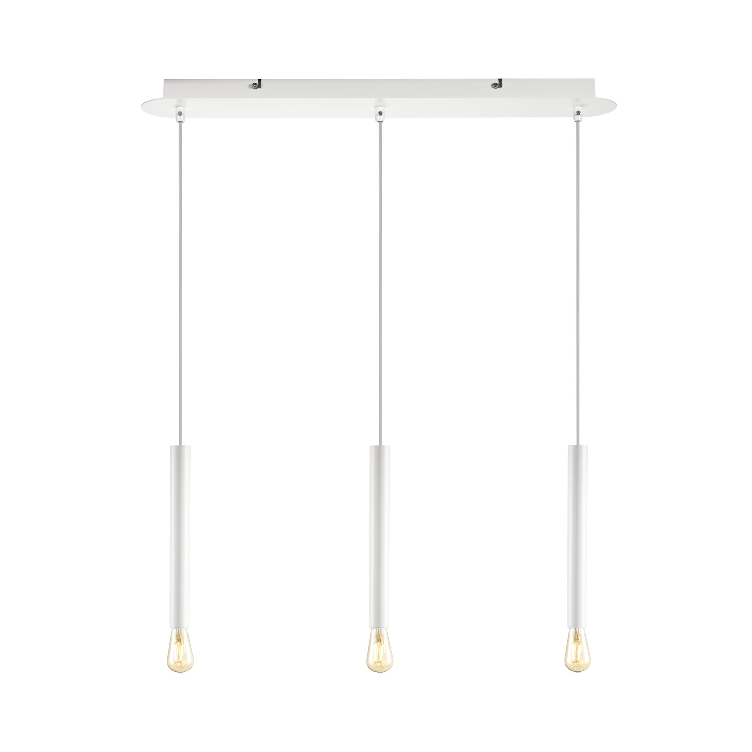 Die längliche FITU Deckenrosette ist in verschiedenen Farbvarianten mit drei oder fünf Ausgängen verfügbar und ermöglicht eine beliebe Kombination mit FITU E27 Pendelleuchten. Eine entsprechende Zugentlastung befindet sich im Lieferumfang.