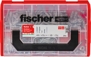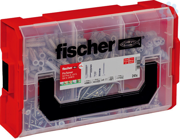 Die Hält-Alles-Box enthält neben dem fischer SX den Nylondübel UX R, den schnellen Gipskartondübel GK und den selbstbohrenden Gipskartondübel Metall GKM (240 Teile). Die FixTainer-Boxen sind mit Tragegriff und transparentem Deckel ausgestattet. Sie können fest miteinander verbunden und damit gestapelt werden. Zudem sind sie kompatibel mit dem Sortimo L-Boxx System.