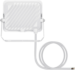 Fluter mit bis zu 5000 lm Lichtstrom. Produkteigenschaften: Reflektorbasierte, symmetrische Lichtverteilung mit 100° x 100° Abstrahlwinkel. Montagebügel mit 30° Winkel und großem Rotationsbereich. Vorinstalliertes, flexibles Kabel (H05RN-F) mit 1 m Länge, 3 x 1.0 mm² gekrimpt. Produktvorteile: Robustes und dennoch leichtes und kompaktes Design. Sichere und sehr gleichmäßige Ausleuchtung, dank opalem, gehärtetem Glasdiffusor. Kein Lichtaustritt im oberen Halbraum (ULOR 0%) bei 0° Aufneigung. Energieersparnis von bis zu 90 % verglichen mit Halogenlampen-Flutern. 3 Jahre Garantie. Anwendungsgebiete: Ersatz für Fluter mit Halogenlampen. Außenanwendung (IP65). Öffentlicher Raum. Anstrahlung von Fassaden. Gärten, Balkone und andere Außenbereiche. Baustellen.