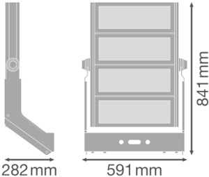 Hochleistungsscheinwerfer für die Großflächen- und Sportstättenbeleuchtung, bis 164 klm. Produkteigenschaften: Modularer Hochleistungsscheinwerfer mit bis zu 135 lm/W. Gemeinsame oder separate Installation mit Floodlight Max Netzteil mit bis zu 40 m Abstand. Erhältlich mit 10°, 30° und 60° symmetrischer Lichtverbeilung, sowie 50°x110° asymmetrischer Abstrahlcharakteristik. Montagebügel mit Rotationsbereich von bis zu 180°. Abdeckscheibe aus hochtransparentem, gehärtetem Glas. Produktvorteile: Extrem lichtstark, robust und langlebig. Bis zu 45 % Energieersparnis verglichen mit Leuchten, die herkömmliche Entladungslampen nutzen. Einfaches Dimmen auf 50% mittels Verdrahtung. Kein Lichtaustritt im oberen Halbraum (ULOR 0%) bei 0° Aufneigung. Optimierte Produktlogistik, Leuchtenköpfe und separat zu bestellende Netzteile in eigenständigen Verpackungen. Flimmerarmes Licht. 5 Jahre Garantie. Anwendungsgebiete: Außenanwendung (IP66). Beleuchtung von großen Flächen. Sportstätten. Baustellen. Direkter Ersatz für Leuchten, die HID-Lampen verwenden. Technische Ausstattung: Netzteil nicht im Lieferumfang des Leuchtenkopfes enthalten. Betrieb nur mit offiziellem 1200 W Netzteil GTIN(EAN) 4058075580749. Zielhilfe in Vorbereitung. Blende zur Begrenzung des vorderen Abstrahlwinkels in Vorbereitung.