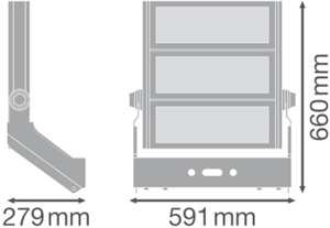 Hochleistungsscheinwerfer für die Großflächen- und Sportstättenbeleuchtung, bis 123 klm. Produkteigenschaften: Modularer Hochleistungsscheinwerfer mit bis zu 135 lm/W. Gemeinsame oder separate Installation mit Floodlight Max Netzteil mit bis zu 40 m Abstand. Erhältlich mit 10°, 30° und 60° symmetrischer Lichtverbeilung, sowie 50°x110° asymmetrischer Abstrahlcharakteristik. Montagebügel mit Rotationsbereich von bis zu 180°. Abdeckscheibe aus hochtransparentem, gehärtetem Glas. Produktvorteile: Extrem lichtstark, robust und langlebig. Bis zu 45 % Energieersparnis verglichen mit Leuchten, die herkömmliche Entladungslampen nutzen. Einfaches Dimmen auf 33% mittels Verdrahtung. Kein Lichtaustritt im oberen Halbraum (ULOR 0%) bei 0° Aufneigung. Optimierte Produktlogistik, Leuchtenköpfe und separat zu bestellende Netzteile in eigenständigen Verpackungen. Flimmerarmes Licht. 5 Jahre Garantie. Anwendungsgebiete: Außenanwendung (IP66). Beleuchtung von großen Flächen. Sportstätten. Baustellen. Direkter Ersatz für Leuchten, die HID-Lampen verwenden. Technische Ausstattung: Netzteil nicht im Lieferumfang des Leuchtenkopfes enthalten. Betrieb nur mit offiziellem 900 W Netzteil GTIN(EAN) 4058075580732. Zielhilfe in Vorbereitung. Blende zur Begrenzung des vorderen Abstrahlwinkels in Vorbereitung.