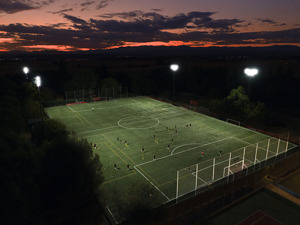 Hochleistungsscheinwerfer für die Großflächen- und Sportstättenbeleuchtung, bis 123 klm. Produkteigenschaften: Modularer Hochleistungsscheinwerfer mit bis zu 135 lm/W. Gemeinsame oder separate Installation mit Floodlight Max Netzteil mit bis zu 40 m Abstand. Erhältlich mit 10°, 30° und 60° symmetrischer Lichtverbeilung, sowie 50°x110° asymmetrischer Abstrahlcharakteristik. Montagebügel mit Rotationsbereich von bis zu 180°. Abdeckscheibe aus hochtransparentem, gehärtetem Glas. Produktvorteile: Extrem lichtstark, robust und langlebig. Bis zu 45 % Energieersparnis verglichen mit Leuchten, die herkömmliche Entladungslampen nutzen. Einfaches Dimmen auf 33% mittels Verdrahtung. Kein Lichtaustritt im oberen Halbraum (ULOR 0%) bei 0° Aufneigung. Optimierte Produktlogistik, Leuchtenköpfe und separat zu bestellende Netzteile in eigenständigen Verpackungen. Flimmerarmes Licht. 5 Jahre Garantie. Anwendungsgebiete: Außenanwendung (IP66). Beleuchtung von großen Flächen. Sportstätten. Baustellen. Direkter Ersatz für Leuchten, die HID-Lampen verwenden. Technische Ausstattung: Netzteil nicht im Lieferumfang des Leuchtenkopfes enthalten. Betrieb nur mit offiziellem 900 W Netzteil GTIN(EAN) 4058075580732. Zielhilfe in Vorbereitung. Blende zur Begrenzung des vorderen Abstrahlwinkels in Vorbereitung.