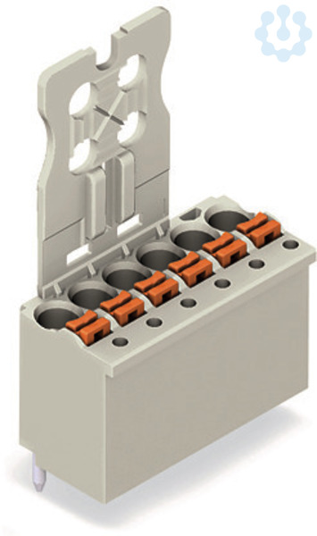 1-Leiter-THT-Federleiste, gerade; Drücker; Push-in CAGE CLAMP®; 1,5 mm²; Rastermaß 3,5 mm; 2-polig; Lötstift Ø 1,0 mm; Griffplatte; direkt bedruckt; 1,50 mm²; lichtgrau