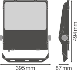 DALI 2.0 basierender Scheinwerfer mit sehr breitstrahlender, asymmetrischer Lichtverteilung für die Flächenbeleuchtung. Produkteigenschaften: DALI-2.0-Schnittstelle zur Integration in Lichtmanagementsysteme. Hohe Lichtausbeute: bis zu 140 lm/W. Asymmetrische Lichtverteilung für die Flächenbeleuchtung. Angeschrägter (45°) Montagebügel mit Rotationsbereich von bis zu 180°. Hoher Überspannungschutz von bis zu 10 kV (L/N-PE), 6 kV (L-N). Integrierte Klimamembrane zur Verhinderung von Kondensatbildung im Inneren der Leuchte. Anschluss über Kabel (2 m), Verdrahtung erforderlich. Schutzart: IP66. Stoßfestigkeit: IK08. Umgebungstemperaturbereich bei Betrieb: -30…+50 °C. Produktvorteile: Energieersparnis von bis zu 90 % verglichen mit Halogenlampen-Flutern. Bis zu 45 % Energieersparnis verglichen mit Leuchten, die herkömmliche Entladungslampen nutzen. Lichtstark, robust und langlebig. Gleichmäßige Leuchtdichteverteilung und reduzierte Blendung. Kein Lichtaustritt im oberen Halbraum (ULOR 0%) bei 0° Aufneigung. Schlüsselloch für besonders einfache Montage. 5 Jahre Garantie. Anwendungsgebiete: Direkter Ersatz für Leuchten, die HID-Lampen verwenden. Außenanwendung (IP66). Parkplätze. Öffentlicher Raum. Industrie. Sportstätten. Parkplätze, Industriestraßen. D-Zeichen gemäß EN 60598-2-24 für feuergefährdete Betriebsstätten, z. B. durch Ansammlung von Staub.
