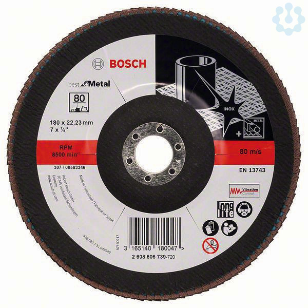 Fächerschleifscheibe d=180mm K80 X571 gewinkelte Ausf., 22,23mm