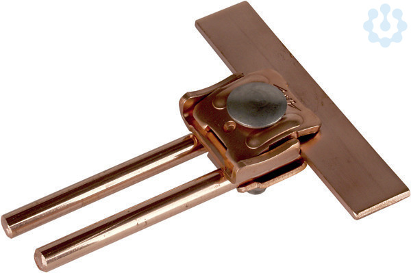Falzklemme nach DIN EN 62561-1, zum Verbinden von Rundleitern mit Falzen. Ausführung mit Doppelüberleger, Leitungsführung längs oder quer.