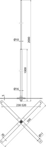 Fangstange für Metalldächer Höhe 2000 mm, zum Schutz von Dachaufbauten, Lichtkuppeln usw. Die Befestigung erfolgt an den Strebenenden (Bohrungen Ø11 mm) durch vier Dachleitungshalter. Die Dachleitungshalter sind entsprechend dem Dachprofil auszuwählen z. B. für Rundstehfalz-Dächer.