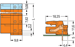 Federleiste 10-polig orange RM7,62mm Einlötst. abgewink.