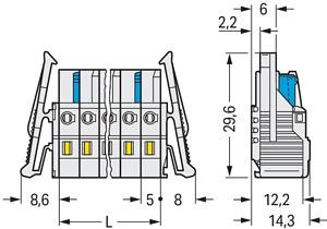 1-Leiter-Federleiste; CAGE CLAMP®; 2,5 mm²; Rastermaß 5 mm; 14-polig; 100% fehlsteckgeschützt; seitliche Verriegelungsklinken; 2,50 mm²; lichtgrau