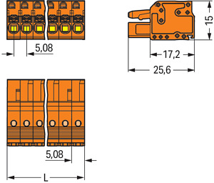 1-Leiter-Federleiste; Drücker; Push-in CAGE CLAMP®; 2,5 mm²; Rastermaß 5,08 mm; 19-polig; mit integrierter Abschlussplatte; 2,50 mm²; orange