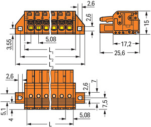 Federleiste 21-polig Befest.fl./Betät.dr. 5,08mm orange