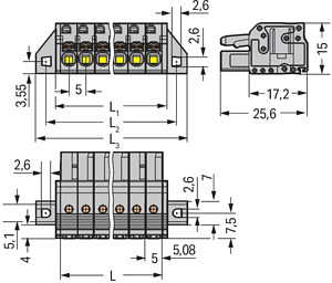 1-Leiter-Federleiste; Drücker; Push-in CAGE CLAMP®; 2,5 mm²; Rastermaß 5 mm; 22-polig; Befestigungflansch; 2,50 mm²; grau