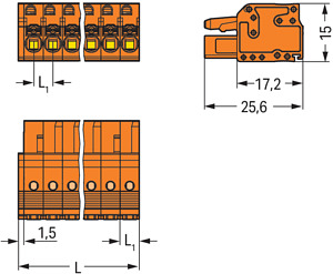 Federleiste 6-polig Betät.dr. 2 Rastnasen 5,08mm orange