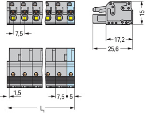 1-Leiter-Federleiste; Drücker; Push-in CAGE CLAMP®; 2,5 mm²; Rastermaß 7,5 mm; 6-polig; 2,50 mm²; grau