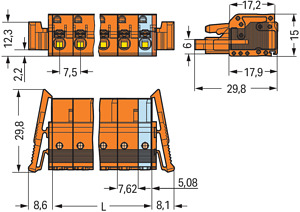 1-Leiter-Federleiste; Drücker; Push-in CAGE CLAMP®; 2,5 mm²; Rastermaß 7,62 mm; 7-polig; seitliche Verriegelungsklinken; 2,50 mm²; orange