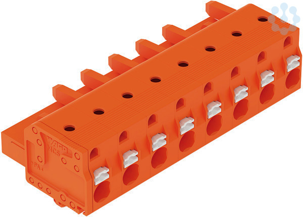 1-Leiter-Federleiste; Drücker; Push-in CAGE CLAMP®; 2,5 mm²; Rastermaß 7,62 mm; 8-polig; Rastfüße; 2,50 mm²; orange