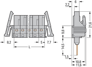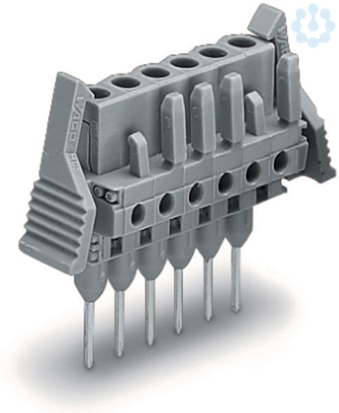 Federleiste für Reihenklemmen; Stifte 0,6 x 1 mm; gerade; Verriegelungsklinke; Rastermaß 5 mm; 15-polig; grau