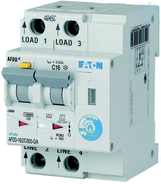 Hochwertiger Brandschutzschalter (Fehlerlichtbogen-Schutzeinrichtung) mit Fehlerstromschutzschalter/Leitungsschutzschalter Kombination, netzspannungsunabhängig, Kontaktstellungsanzeige rot - grün, Klemmen-Hintersteckschutz, tristabiler Rastschieber - ermöglicht Ausbau aus einem bestehenden Verschienungsverband, umfangreiches Zubehörprogramm nachträglich anbaubar, große Auswahl an Bemessungsfehlerströmen, Bemessungsströme bis 40 A, Auslösecharakteristiken B, C, D, Bemessungsschaltvermögen 10 kA, geeignet zur Verwendung im Freien (Baustrom- und Freiluftverteiler) bis -25 °C