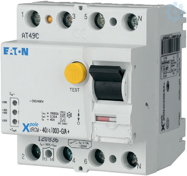 Fehlerstromschutzschalter dRCM, 4-polig, Bemessungsstrom In: 40 A, Bemessungskurzschlussfestigkeit Icn: 10 kA, Bemessungsfehlerstrom IΔN: 0,3 A, Schaltgeräte für Wohn- und Zweckbau