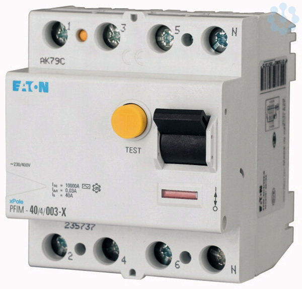Fehlerstromschutzschalter PFIM, 4-polig, Bemessungsstrom In: 40 A, Bemessungskurzschlussfestigkeit Icn: 10 kA, Bemessungsfehlerstrom IΔN: 0,03 A, Typ G/A (ÖVE E 8601), pulsstromsensitiv, stoßstromfest 3 kA, Schaltgeräte für Wohn- und Zweckbau