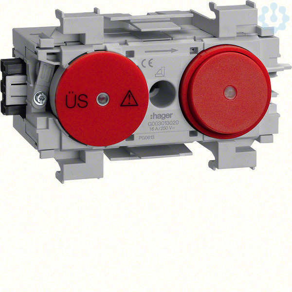 Überspannungsschutz+Schalter Wago Steck-/Klemmtechnik frontrastend rot. Überspannungsschutz und Schalter, Feinschutz Überspannungskategorie III, vorverdrahtet, mit Schnellbefestigung für frontrastender Geräteeinbau, anreihbar durch 3-poliges Steckverbindersystem. Leitungsanschluss über Steckklemmen 1,5 - 2,5 mm² oder über verpolungssicheres Steckverbindersystem.