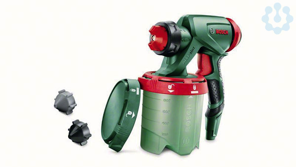 Systemzubehör Feinsprühpistole für alle Farbarten, Schnelles Sprühen, perfekte Ergebnisse, ALLPaint-Sprühsystem: ein Werkzeug für alle Farbsorten, SDS für einfaches, schnelles Nachfüllen von Farbe und eine einfache Reinigung, Enthält einen großen 1.000-ml-Behälter für selteneres Nachfüllen bei der Arbeit, ConstantFeed sorgt für gleichmäßige Schichten, sogar über Kopf oder in Bodennähe, Lieferung mit drei Düsen zum Sprühen von Innenwandfarben, Lacken und Lasuren, Für die Verwendung mit den Farbsprühsystemen PFS 3000-2 und PFS 5000, Karton