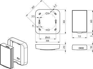 Infrarot-Fernbedienung zum komfortablen Einstellen oder Ändern der Parameter, Extra große Reichweite, Inklusive Wandhalterung, Einfache Programmierung der Präsenzmelder-Serien, - PD2-M-DALI/DSI, - PD4-M-DALI/DSI, - PD4-M-DALI/DSI-K, - PD9-M-DALI/DSI, - PD9-M-DALI/DSI-GH, - PD4-M-DUO-DALI