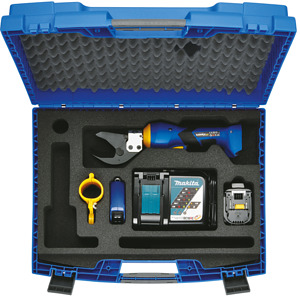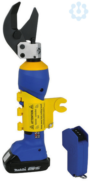 ES 32 RMC Akkuhydraulisches Schneidwerkzeug Ø 32 mm, Werkzeug mit Fernbedienung, z.B. für Teleskopstangen, zum Schneiden von mehrdrähtigen Al/Cu-Kabeln Klasse 1 und 2, extrem robuste Bauform bei geringem Eigengewicht, schlanker Schneidkopf - ideal bei kritischen Platzverhältnissen, alle Werkzeugdaten im Blick dank Display und i-press® App, leistungsstarker 18 V Li-Ion-Akku - hohe Kapazität, kurze Ladezeit, auch als normaler Kabelschneider einsetzbar, wenn der Hotstick-Halter nicht angebracht wird