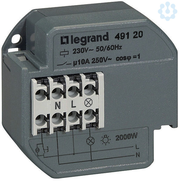 Legrand Treppenlichtzeitschalter, zum Einbau in Unterputz-Dose, 1-polig, 10 A/ 250 VAC, elektronisch, Steuerspannung AC 230 V, 1 Schließer, sehr geringes Schaltgeräusch, Zeitbereich: 1 - 60 Min., jederzeit nachschaltbar, mit aktiver Vorwarnfunktion (an seitlichem Einstellschalter zuschaltbar), Nulldurchgangsschaltung, Glimmlampenstrom max. 50 mA, Eigenverbrauch 0,8 W, Schraubenlose Anschlussklemmen, Schutzklasse IP 20, Abmessung: 49 x 46 x 26 mm (Höhe x Breite x Tiefe).