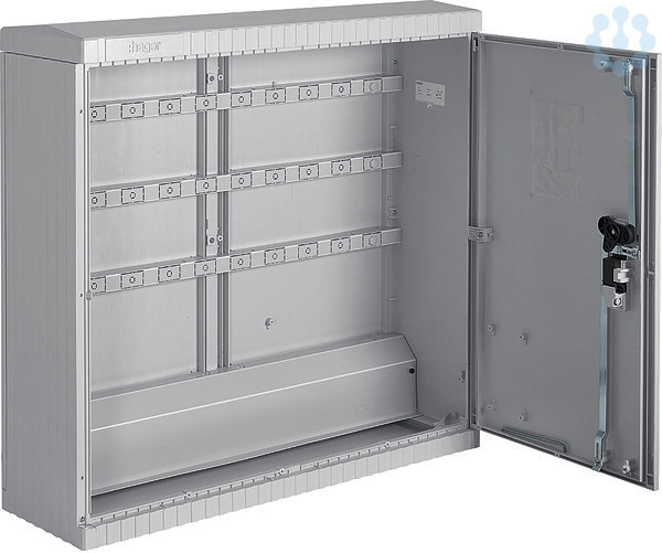 Festplatzverteilerschrank Gr.2, ortsfest, 1-türig, mit SaS 30x8mm, 5-polig.Ortsfester Stromverteilerschrank für Fest- und Markplätze, Schutzart IP 44, aus glasfaserverstärktes Polyester FS 833.5 nach DIN EN 14598 mit Recyclat. Die DIN VDE 0100 Teil 722 regelt die Installation für fliegende Bauten, Wagen und Wohnwagen nach Schaustellerart. Festplatzverteilerschrank mit Sammelschienen-System zum Einbau von Steckdosenleisten zur individuellen Bestückung. Profiliertes Gehäuse im Rippendesign. Mit Sammelschienen-System 5-polig E-Cu 30 x 6 mm. Tür mit Öffnungswinkel 180 Grad bei freiem Stand und 90 Grad bei angereihten Gehäusen. Türen sind aushängbar, Türanschlag links oder rechts möglich. Schließung mit Schwenkhebel, Drei-Punkt-Basküleverschluss, Doppelschließung, ein Profilhalbzylindern ist eingebaut. Die Belüftung erfolgt über labyrinthartig ausgebildete Lüftungskanäle und ist durch Eindringen von Fremdkörpern stochersicher. Hinweis: Festplatzverteilerschrank kann je nach Ausführung mit Festplatz-Eingrabsockel oder Festplatzsockel/Bodenaufbausockel fest montiert werden. Beim Einbau von Steckdosenleisten in Festplatzverteilerschränken und Säulen, zu deren Bedienung Laien Zutritt haben, ist vom Errichter der Anlage der Schutz gegen direktes Berühren sicherzustellen.