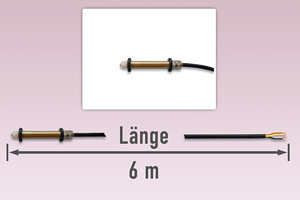 Feuchte- und Temperaturfühler in Verbindung mit Eis- und Schneemelder 1773 (nicht im Lieferumfang enthalten), für Dachrinnenheizungen, einschl. 6,00 m Fühlerleitung (4-adrig), Schutzart IP68, temperaturbeständig -30...+75°C, zur Montage in der Dachrinne, mikroben- und ölbeständig nach DIN VDE 0472/9.21 Abs. 8036