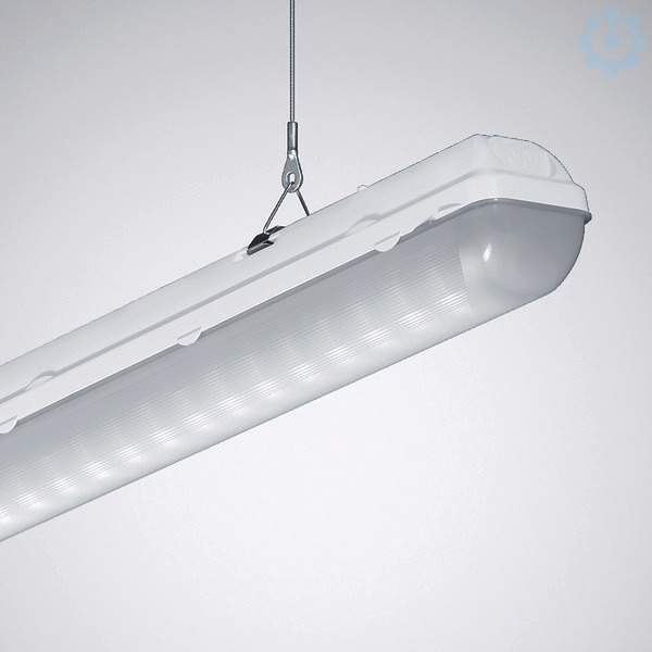 LED-Feuchtraum-Anbauleuchte aus PC. Vorteilhaft bei erhöhten Anforderungen an die mechanische Stabilität. Erfüllt DIN 10500. Die Leuchten sind für die Anwendungen in HACCP, IFS Version 6 und/oder BRC Global Standard Food Version 7 zertifizierten Unternehmen der Lebensmittel- und Getränkeindustrie geeignet. Leuchte mit begrenzter Oberflächentemperatur gemäß DIN EN 60598-2-24 für den Einsatz in feuergefährdeten Betriebsstätten geeignet (D-Kennung). Montage über beiliegende Edelstahl-Befestigungsklammern. Abgehängte Montage über optionales Zubehör möglich. Mit Drahtbügel aus Edelstahl für Stahlbandaufhängung Aragon SB oder für bauseitige Kettenaufhängung. Mit opaler PC-Abdeckwanne, schlagzäh. Blendungsbewertung nach UGR-Einstufung (EN 12464-1) < 25. Wanne aus einem Stück gefertigt, mechanisch stabil. Mit innen liegenden Längsprismen und fein strukturierten Stirnseiten. Sicherer Halt der Wanne durch werkzeuglos einrastende Schnellverschlüsse. Bemessungslichtstrom 4000 lm, Bemessungsleistung 29,00 W, Leuchten-Lichtausbeute 137 lm/W. Lichtfarbe neutralweiß, ähnlichste Farbtemperatur (CCT) 4000 K, allgemeiner Farbwiedergabeindex (CRI) Ra > 80. Mittlere Bemessungslebensdauer L80(tq 25 °C) = 50.000 h. Leuchtenkörper aus PC, schwerentflammbar und recycelbar. Farbe lichtgrau (RAL 7035). Mit decken- und stirnseitigen Prägungen für Netzzu- und -weiterleitung sowie für Durchgangsverdrahtung mittels wärmebeständiger Innenverdrahtung. Maße (L x B): 1270 mm x 113 mm, Leuchtenhöhe 100 mm. Zulässige Umgebungstemperatur (ta): -25 °C - +35 °C. Schutzklasse (EN 61140): I, Schutzart (DIN EN 60529): IP66, Stoßfestigkeitsgrad nach IEC 62262: IK08, Prüftemperatur Glühdrahttest gemäß IEC 60695-2-11: 650 °C. Mit elektronischem Betriebsgerät, schaltbar. Das Produkt erfüllt die grundlegenden Anforderungen der anwendbaren EU-Richtlinien und des Produktsicherheitsgesetzes und trägt die CE-Kennzeichnung.