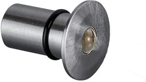 Glaskugel-Austrittselement, für Faser S2 und S2M , chrom matt. Material: Messing / Glas, Aussendurchmesser: Ø 17,5 mm, Höhe ohne Glaskugel: 1,5 mm, Höhe mit Glaskugel: 5 mm, Einbautiefe ohne Faser: 20 mm, Einbautiefe mit Faser: 100 mm, Bohrdurchmesser: Ø 10 mm, Befestigungsart: Kleben (mit Brumberg-Kleber 48290000).