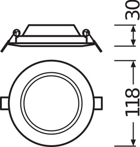 Flache Downlightleuchten mit integriertem Treiber, rund. Produkteigenschaften: Schmaler sichtbarer Rahmen. Anschlussbox mit Steckklemme für werkzeuglosen Anschluss. Lichtleiter aus vergilbungsfreiem PMMA für lange Lebensdauer. Produktvorteile: Sehr schlankes Gehäuse. Niedrige Installationstiefe. Hohe Lichtausbeute. Bis zu 60 % Energieersparnis (im Vergleich zu Leuchten, die Kompaktleuchtstofflampen nutzen). Sehr homogenes Licht. Funktionales Design. Einfache Installation mit schnellem Anschluss. Einfache Installation dank integriertem Treiber. Anwendungsgebiete: Direkter Ersatz für Leuchten mit Kompaktleuchtstofflampen. Allgemeinbeleuchtung. Öffentlicher Raum. Treppenhäuser. Flure. Eingangsbereiche. Geschäfte. Technische Ausstattung: Rahmen für Anbaumontage als Zubehör erhältlich.