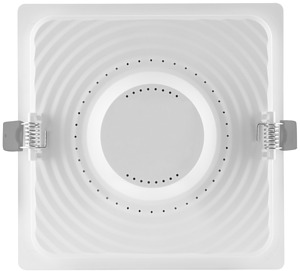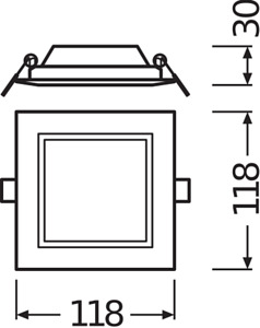 Flache Downlightleuchten mit integriertem Treiber, quadratisch. Produkteigenschaften: Schmaler sichtbarer Rahmen. Anschlussbox mit Steckklemme für werkzeuglosen Anschluss. Lichtleiter aus vergilbungsfreiem PMMA für lange Lebensdauer. Produktvorteile: Sehr schlankes Gehäuse. Niedrige Installationstiefe. Hohe Lichtausbeute. Bis zu 60 % Energieersparnis (im Vergleich zu Leuchten, die Kompaktleuchtstofflampen nutzen). Sehr homogenes Licht. Funktionales Design. Einfache Installation mit schnellem Anschluss. Einfache Installation dank integriertem Treiber. Anwendungsgebiete: Direkter Ersatz für Leuchten mit Kompaktleuchtstofflampen. Allgemeinbeleuchtung. Öffentlicher Raum. Treppenhäuser. Flure. Eingangsbereiche. Geschäfte. Technische Ausstattung: Rahmen für Anbaumontage als Zubehör erhältlich.