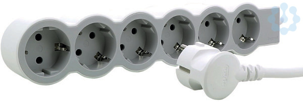 Flache Steckdosenleiste 6x Steckdos e, 5 Meter Kabel Farbe: Ultraweiß/Grau