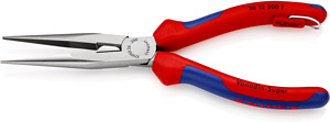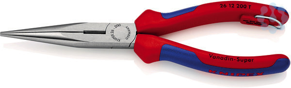 26 12 200 T Flachrundzange mit Schneide Elastische Spitzen: formstabil auch bei Verwindung. Verwindungstolerante, elastische Präzisionsspitzen. Flach-runde, lange, spitz zulaufende Backen. Mit Schneiden für weichen, mittelharten und harten Draht. Schneiden zusätzlich induktiv gehärtet, Schneidenhärte ca. 61 HRC. Zange mit Befestigungsöse zum Anbringen einer Absturzsicherung. - Schneidwerte mittelharter Draht (Durchmesser): Ø 3,2mm - Schneidwerte harter Draht (Durchmesser): Ø 2,2mm - Backendicke (am Gelenk) (T1): 9,5mm - Spitzenbreite (W4): 3,0mm - Spitzendicke (T2): 2,5mm - Backenlänge (L3): 73,0mm - Kopfbreite (W3): 18mm - Absturzsicherung: Ja