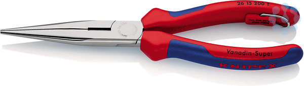 26 15 200 T Flachrundzange mit Schneide Elastische Spitzen: formstabil auch bei Verwindung. Verwindungstolerante, elastische Präzisionsspitzen. Flach-runde, lange, spitz zulaufende Backen. Mit Schneiden für weichen, mittelharten und harten Draht. Schneiden zusätzlich induktiv gehärtet, Schneidenhärte ca. 61 HRC. Zange mit Befestigungsöse zum Anbringen einer Absturzsicherung. - Schneidwerte mittelharter Draht (Durchmesser): Ø 3,2mm - Schneidwerte harter Draht (Durchmesser): Ø 2,2mm - Backendicke (am Gelenk) (T1): 9,5mm - Spitzenbreite (W4): 3,0mm - Spitzendicke (T2): 2,5mm - Backenlänge (L3): 73,0mm - Kopfbreite (W3): 18mm - Absturzsicherung: Ja