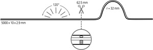 mit selbstklebender Rückseite für die Innenanwendung, IP20 alle 62,5 mm / 32 LEDs teilbar Anzahl der LEDs: 2560 LED Abstand: 1,95 mm Ausstrahlwinkel: 130° CRI: >90 Lichtstrom pro Meter: 1246 lm Betriebsspannung: 24 V DC Leistung pro Meter: 15 W Lebensdauer L70B50: >= 36.000 h Energieeffizienzklasse: F LxBxH in mm: 5.000 x 10 x 2,9 Achtung: LED-Strip nur mit Aluminiumprofil sowie ausreichender Belüftung betreiben. Maximale Länge pro Anschluss: 5 Meter. Für größere Längen neu einspeisen. Lieferumfang: 5 Meter-Rolle mit 150 mm Anschlussleitung