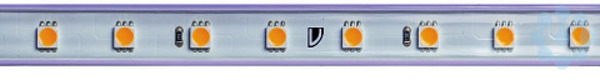 für die Außenanwendung, IP65 UV-beständig alle 500 mm / 27 LEDs teilbar Anzahl der LEDs: 54 LED Abstand: 18,51 mm Ausstrahlwinkel: 120° CRI: >90 Lichtstrom pro Meter: 360 lm Betriebsspannung: 230V AC Leistung pro Meter: 8 W Lebensdauer L70: >= 36.000 h BxH in mm: 15,5 x 6 Leichte lötfreie Montage durch Steckverbindungen. Maximale Länge pro Anschluss: 50 Meter. Für größere Längen neu einspeisen. nicht dimmbar