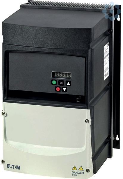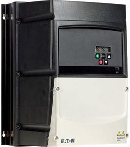 Frequenzumrichter, Typkenner: DC1, Bemessungsbetriebsspannung: Ue = 230 V AC, 3-phasig, 240 V AC, 3-phasig, Ausgangsspannung bei Ue: U2 = 230 V AC, 3-phasig, 240 V AC, 3-phasig, Netzspannung (50/60Hz): ULN = 200 (-10%) - 240 (+10%) V, Bemessungsbetriebsstrom bei 150 % Überlast: Ie = 46 A, Hinweis: Bemessungsbetriebsstrom bei einer Schaltfrequenz von 6 kHz und einer Umgebungstemperatur von +40 °C, Hinweis: Überlastzyklus für 60 s alle 600 s, Zugeordnete Motorleistung Hinweis: für normale vierpolige, innen- und außenbelüftete Drehstrom-Asynchronmotoren mit 1500 min-1 bei 50 Hz bzw. 1800 min-1 bei 60 Hz, Überlastzyklus für 60 s alle 600 s, bei 230 V, 50 Hz, Zugeordnete Motorleistung 150 % Überlast: P = 11 kW, 150 % Überlast: IM = 46 A, Zugeordnete Motorleistung Hinweis: bei 220 - 240 V, 60 Hz, Zugeordnete Motorleistung 150 % Überlast: P = 15 HP, Zugeordnete Motorleistung 150 % Überlast: IM = 46 A, Schutzart: IP66/NEMA 4X, Schnittstelle/Feldbus (eingebaut): OP-Bus (RS485)/Modbus RTU, CANopen®, Feldbusanschaltung (optional): SmartWire-DT, Ausstattung: Funkentstörfilter, Brems-Chopper, 7-Segment-Anzeige, zusätzlicher Platinenschutz, UV-beständig, Baugröße: FS4, Normen und Bestimmungen: Allgemeine Anforderungen: IEC/EN 61800-2, EMV-Anforderungen: IEC/EN 61800-3, Anforderungen an die Sicherheit: IEC/EN 61800-5-1