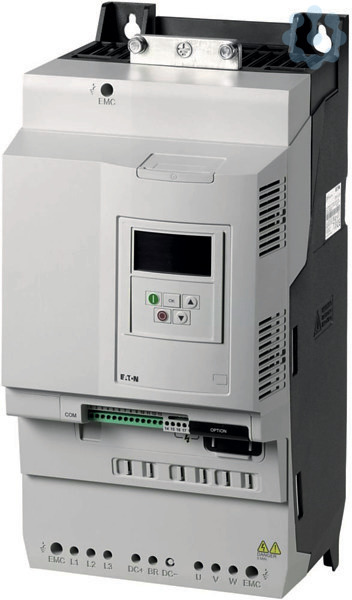 Frequenzumrichter, Typkenner: DA1, Bemessungsbetriebsspannung: Ue = 500 V AC, 3-phasig, 600 V AC, 3-phasig, Ausgangsspannung bei Ue: U2 = 500 V AC, 3-phasig, 600 V AC, 3-phasig, Netzspannung (50/60Hz): ULN = 500 (-10%) - 600 (+10%) V, Bemessungsbetriebsstrom bei 150 % Überlast: Ie = 65 A, Hinweis: Bemessungsbetriebsstrom bei einer Schaltfrequenz von 8 kHz und einer Umgebungstemperatur von +50 °C, Hinweis: Überlastzyklus für 60 s alle 600 s, Zugeordnete Motorleistung Hinweis: für normale vierpolige, innen- und außenbelüftete Drehstrom-Asynchronmotoren mit 1500 min-1 bei 50 Hz bzw. 1800 min-1 bei 60 Hz, Überlastzyklus für 60 s alle 600 s, bei 500 V, 50 Hz, Zugeordnete Motorleistung 150 % Überlast: P = 45 kW, 150 % Überlast: IM = 65 A, Zugeordnete Motorleistung Hinweis: bei 525 V, 50 Hz, Zugeordnete Motorleistung 150 % Überlast: P = 45 kW, 150 % Überlast: IM = 62 A, Zugeordnete Motorleistung Hinweis: bei 550 - 600 V, 60 Hz, Zugeordnete Motorleistung 150 % Überlast: P = 60 HP, Zugeordnete Motorleistung 150 % Überlast: IM = 62 A, Schutzart: IP20/NEMA 0, Schnittstelle/Feldbus (eingebaut): OP-Bus (RS485)/Modbus RTU, CANopen®, Feldbusanschaltung (optional): Ethernet IP, DeviceNet, PROFIBUS, PROFINET, Modbus-TCP, EtherCAT, SmartWire-DT, Ausstattung: Brems-Chopper, OLED-Anzeige, zusätzlicher Platinenschutz, Zwischenkreisdrossel, Baugröße: FS5, Normen und Bestimmungen: Allgemeine Anforderungen: IEC/EN 61800-2, EMV-Anforderungen: IEC/EN 61800-3, Anforderungen an die Sicherheit: IEC/EN 61800-5-1