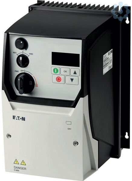 Frequenzumrichter, Typkenner: DA1, Bemessungsbetriebsspannung: Ue = 500 V AC, 3-phasig, 600 V AC, 3-phasig, Ausgangsspannung bei Ue: U2 = 500 V AC, 3-phasig, 600 V AC, 3-phasig, Netzspannung (50/60Hz): ULN = 500 (-10%) - 600 (+10%) V, Bemessungsbetriebsstrom bei 150 % Überlast: Ie = 17 A, Hinweis: Bemessungsbetriebsstrom bei einer Schaltfrequenz von 8 kHz und einer Umgebungstemperatur von +40 °C, Hinweis: Überlastzyklus für 60 s alle 600 s, Zugeordnete Motorleistung Hinweis: für normale vierpolige, innen- und außenbelüftete Drehstrom-Asynchronmotoren mit 1500 min-1 bei 50 Hz bzw. 1800 min-1 bei 60 Hz, Überlastzyklus für 60 s alle 600 s, bei 500 V, 50 Hz, Zugeordnete Motorleistung 150 % Überlast: P = 11 kW, 150 % Überlast: IM = 17 A, Zugeordnete Motorleistung Hinweis: bei 525 V, 50 Hz, Zugeordnete Motorleistung 150 % Überlast: P = 11 kW, 150 % Überlast: IM = 16.6 A, Zugeordnete Motorleistung Hinweis: bei 550 - 600 V, 60 Hz, Zugeordnete Motorleistung 150 % Überlast: P = 15 HP, Zugeordnete Motorleistung 150 % Überlast: IM = 17 A, Schutzart: IP66/NEMA 4X, Schnittstelle/Feldbus (eingebaut): OP-Bus (RS485)/Modbus RTU, CANopen®, Feldbusanschaltung (optional): Ethernet IP, DeviceNet, PROFIBUS, PROFINET, Modbus-TCP, EtherCAT, Ausstattung: Brems-Chopper, OLED-Anzeige, Lokale Bedienelemente, zusätzlicher Platinenschutz, Baugröße: FS3, Normen und Bestimmungen: Allgemeine Anforderungen: IEC/EN 61800-2, EMV-Anforderungen: IEC/EN 61800-3, Anforderungen an die Sicherheit: IEC/EN 61800-5-1