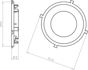 HaloX® 100 Frontteile (1281-02). Für die Verarbeitung im Ortbeton ist das formstabile HaloX®-System modular aufgebaut. Drei Gehäusedurchmesser mit einer Vielzahl an runden, quadratischen sowie universellen Frontteilen ermöglichen die Integration von Leuchten und Lautsprechern bis zu einem Einbaudurchmesser von 250 mm auch bei Sichtbeton. Mit Tunnel bietet das System ausreichend Raum für die Aufnahme von Betriebsgeräten, z. B. LED-Treiber. Optionale Verlängerungsringe dienen der Vergrößerung der Einbautiefe. Alle Frontteile sind feuchtigkeitsabweisend und können bereits vor dem Verlegen der ersten Bewehrung exakt positioniert und aufgenagelt werden. Gehäuse und Frontteile werden kraftschlüssig und stabil miteinander verrastet und lassen sich auch nachträglich noch frei ausrichten. Durch die werkzeuglose Öffnungstechnik mit Kombinationseinführung M20/M25 können Rohre einfach und schnell eingeführt werden und selbst bei Fehlbelegung lässt sich die Einführung einfach wieder verschließen. Sie bietet eine sichere Rohrrückhaltung mit Tiefenanschlag, so dass ein nachträgliches innenseitiges Kürzen der Rohre entfällt. Nach dem Vergießen lassen sich Frontteile mit definiertem Einbaudurchmesser durch einen gezielten Hammerschlag öffnen. Die Frontteile für universelle Öffnungsmaße können flächig an- oder überspachtelt werden. Anschließend erfolgt die Erstellung der gewünschten Installationsöffnung mit herkömmlichen Fräswerkzeugen, z. B. MULTI 4000. Installationsart: Ortbeton | Frontteil Form: Runder Deckenauslass | Einbaudurchmesser Leuchte / Lautsprecher: 75 mm | Leuchtenblende min. Ø: 82 mm