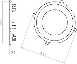 HaloX® 100 Frontteile (1281-03). Für die Verarbeitung im Ortbeton ist das formstabile HaloX®-System modular aufgebaut. Drei Gehäusedurchmesser mit einer Vielzahl an runden, quadratischen sowie universellen Frontteilen ermöglichen die Integration von Leuchten und Lautsprechern bis zu einem Einbaudurchmesser von 250 mm auch bei Sichtbeton. Mit Tunnel bietet das System ausreichend Raum für die Aufnahme von Betriebsgeräten, z. B. LED-Treiber. Optionale Verlängerungsringe dienen der Vergrößerung der Einbautiefe. Alle Frontteile sind feuchtigkeitsabweisend und können bereits vor dem Verlegen der ersten Bewehrung exakt positioniert und aufgenagelt werden. Gehäuse und Frontteile werden kraftschlüssig und stabil miteinander verrastet und lassen sich auch nachträglich noch frei ausrichten. Durch die werkzeuglose Öffnungstechnik mit Kombinationseinführung M20/M25 können Rohre einfach und schnell eingeführt werden und selbst bei Fehlbelegung lässt sich die Einführung einfach wieder verschließen. Sie bietet eine sichere Rohrrückhaltung mit Tiefenanschlag, so dass ein nachträgliches innenseitiges Kürzen der Rohre entfällt. Nach dem Vergießen lassen sich Frontteile mit definiertem Einbaudurchmesser durch einen gezielten Hammerschlag öffnen. Die Frontteile für universelle Öffnungsmaße können flächig an- oder überspachtelt werden. Anschließend erfolgt die Erstellung der gewünschten Installationsöffnung mit herkömmlichen Fräswerkzeugen, z. B. MULTI 4000. Installationsart: Ortbeton | Frontteil Form: Runder Deckenauslass | Einbaudurchmesser Leuchte / Lautsprecher: 80 mm | Leuchtenblende min. Ø: 87 mm