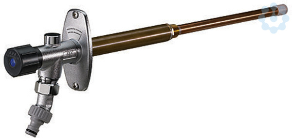 Frostsichere Aussenarmatur mit automatischer Entleerfunktion, Werksseitig vormontiert, Nenndruck: PN16 Gesamt-Aussendurchmesser 26,4 mm Flexibler Rohranschluss DN 15 mit Schlauchanschlussverschraubung. Alle im geschlossenen Zustand mediumberuehrten Metallteile aus Rotguss wartungsfreie Spindelabdichtung, mit schwarzem Kunststoff-Bediengriff und blauem Signierplaettchen. Auslaufgehaeuse mit angegossener Rosette, mit EPDM-Sitzdichtung, mit DIN-/DVGW- und Schallschutzzulassung inkl.Rohrbelueftern und Rueckflussverhinderer, als Sicherheitseinrichtung nach DIN EN 1717 und DIN 1988 (Teil4).
